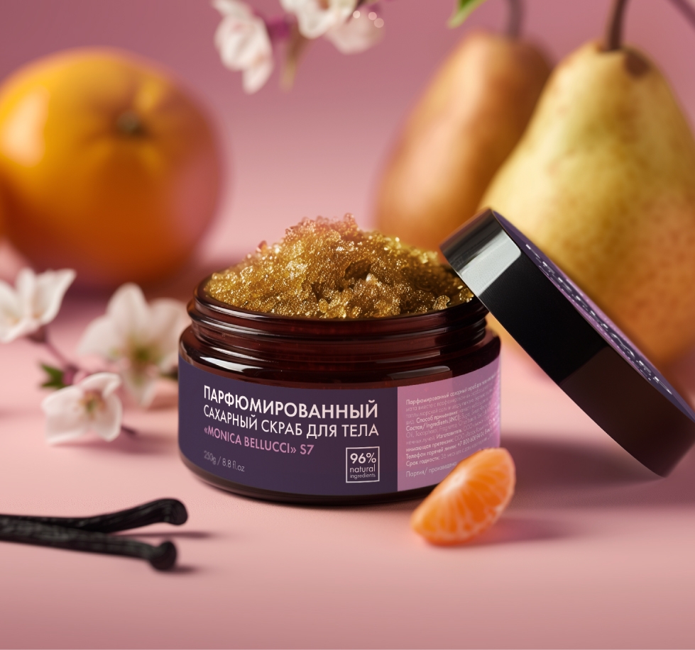 Получите удовольствие от любимого парфюма и погрузитесь в страстно-пьянящую атмосферу вместе с соблазнительным цветочно-фруктовым ароматом парфюмированного скраба для тела «MONICA BELLUCCI». Природная формула скраба обогащена маслами миндаля, макадамии, какао, облепихи, содержит витамин Е, кристаллы морской соли и цедру лимона. Бережно отшелушивает омертвевшие клетки, насыщает кожу незаменимыми минералами, интенсивно питает, увлажняет, дарит коже сияние и свежий вид.
